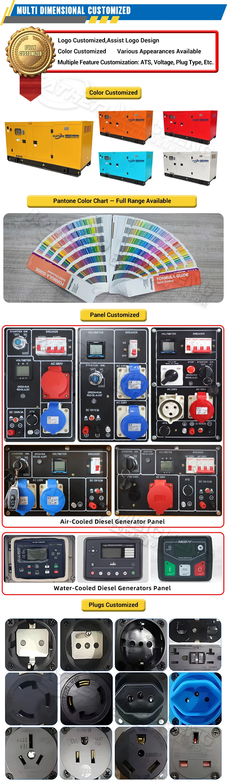 Typ přívěsu, tichý typ, super tichý typ, otevřený rám, přenosný typ, mobilní typ. |