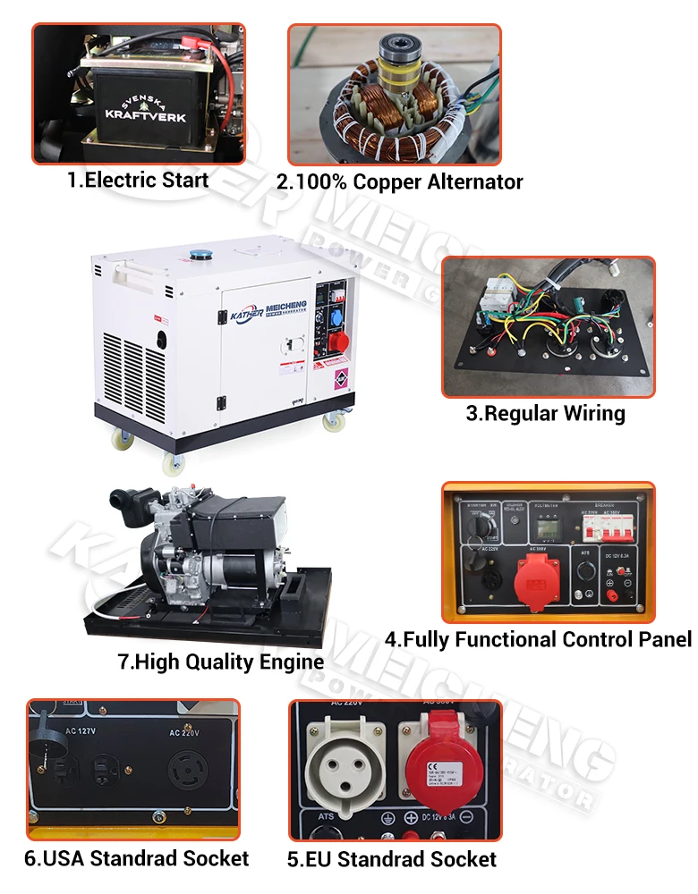 சூப்பர் சைலண்ட் டீசல் ஜெனரேட்டர் 3KW 5KW 6KW 7KW 8KW 10KW 12KW 15KW ஐச்சரியமான ATS மின்சார தொடக்கம் ஒற்றை/இரட்டை சிலிண்டர் நான்கு ஸ்ட்ரோக்